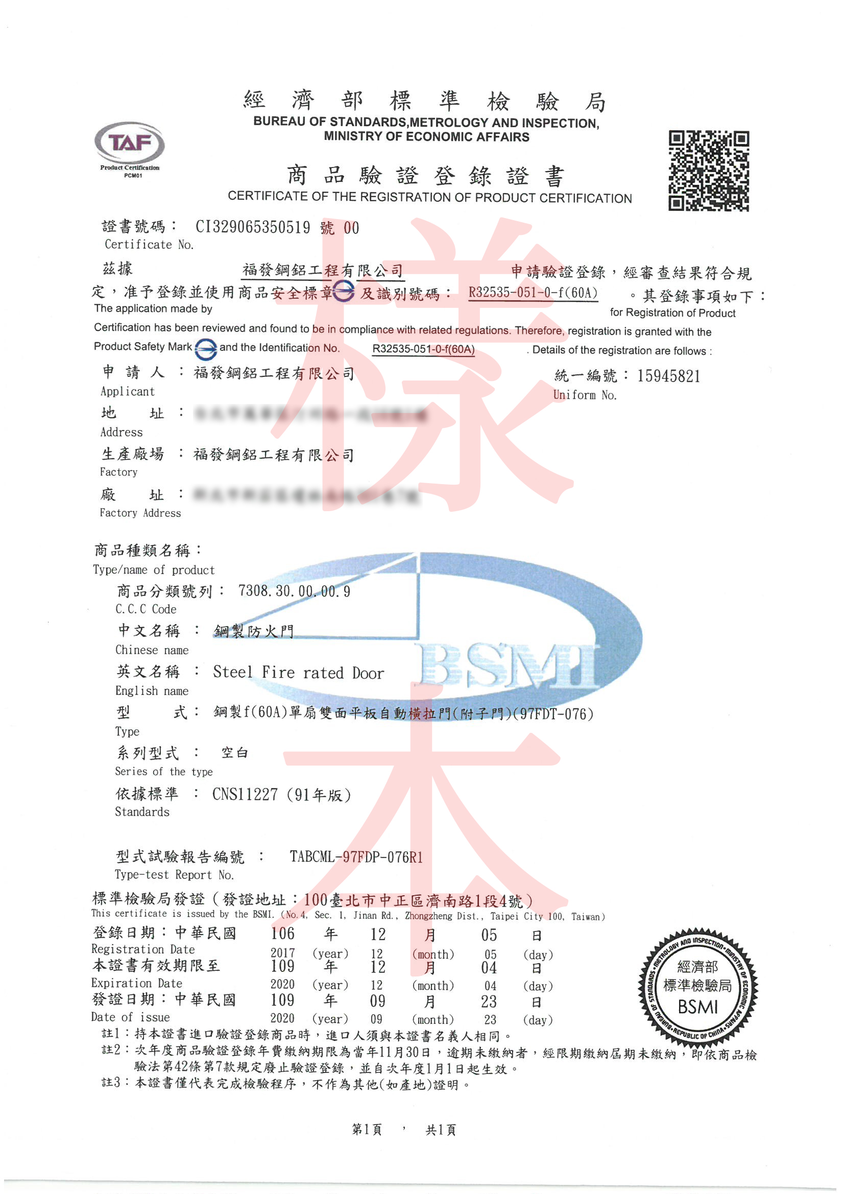 - 通過CNS 11227防火測試,防火等級達60A