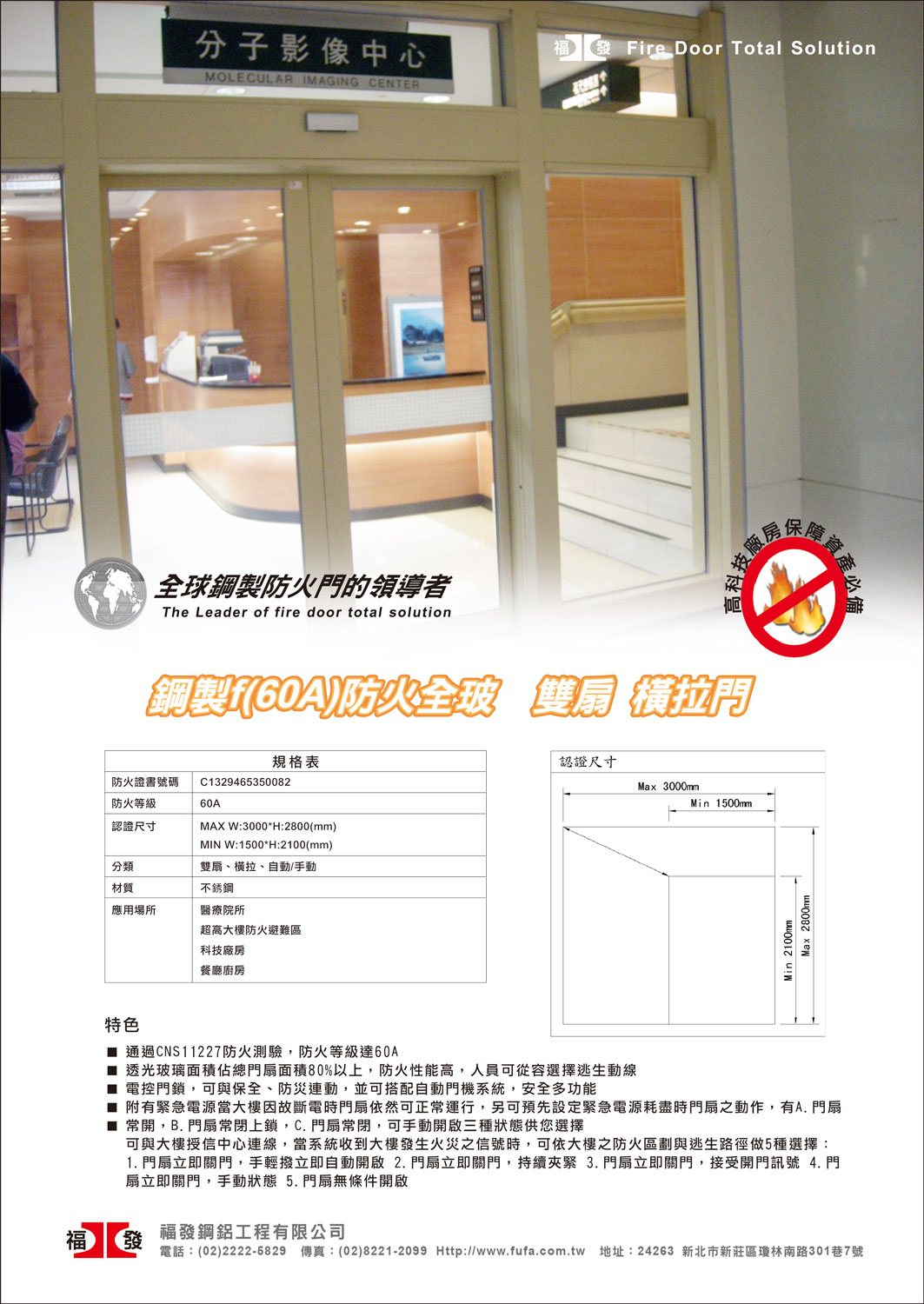 - 透光玻璃面積佔總門扇面積80%以上,防火性能高,人員可從容選擇逃生動線
