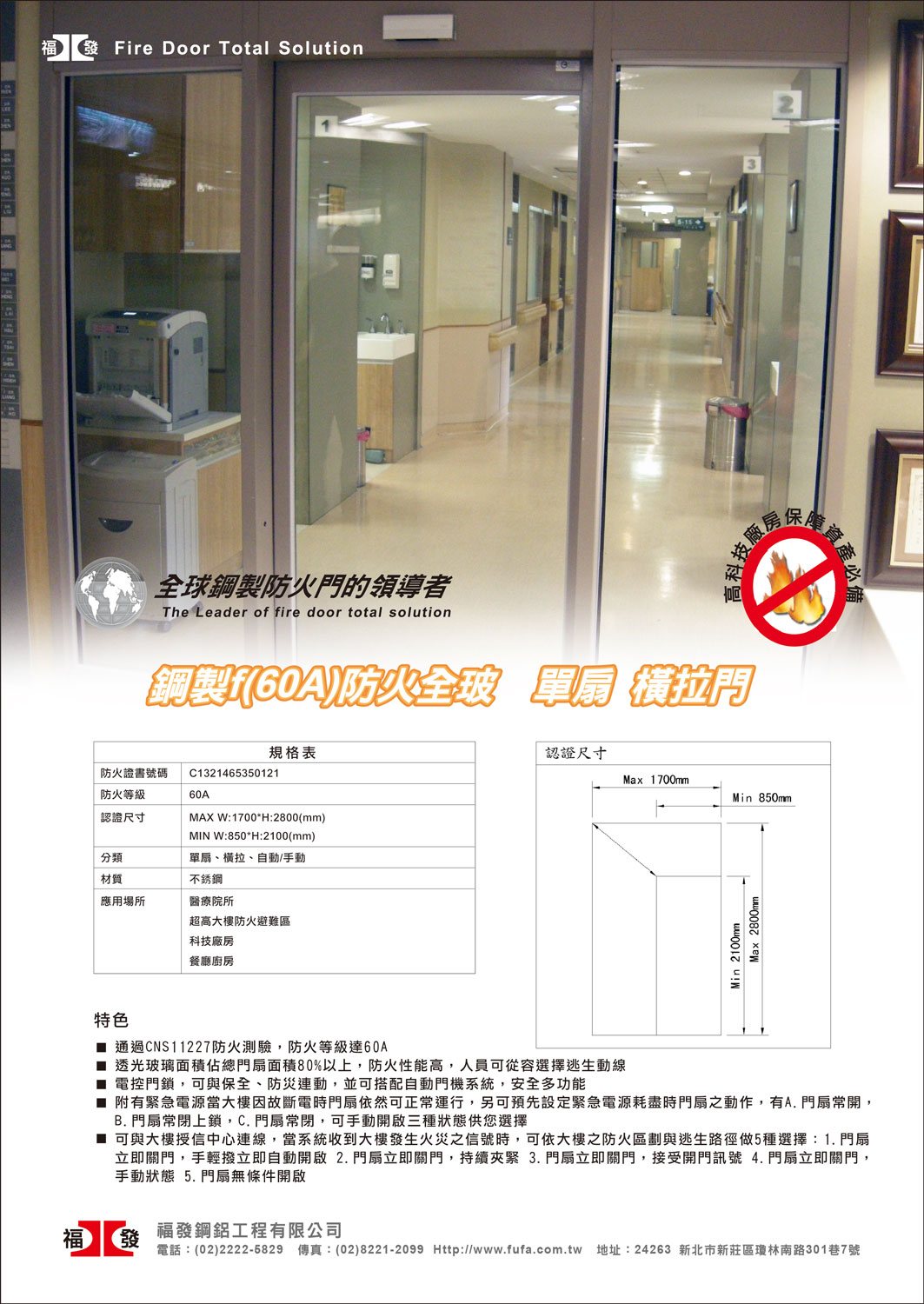 - 性能透光面積總門扇面積8%以上,防火透光容選擇佔高線80%