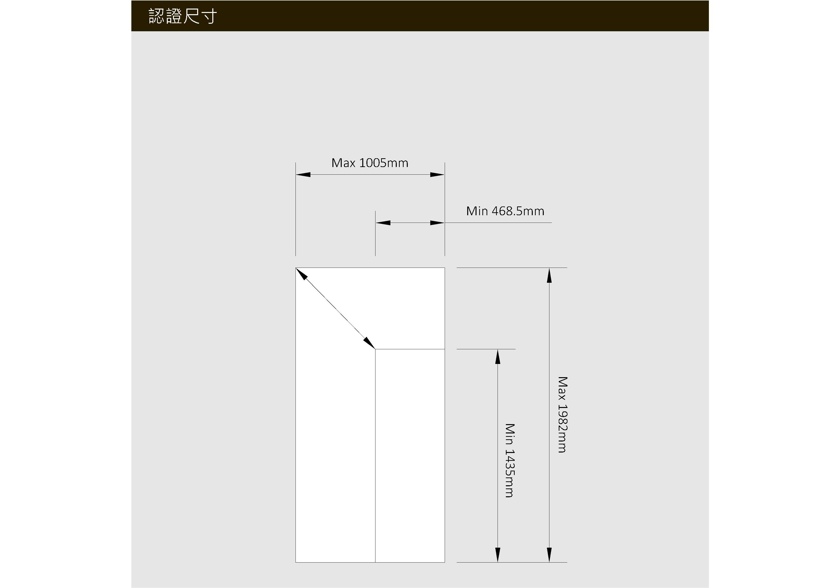 認證尺寸 Max W:1005*H:1982 Min W:468.5*H:1435